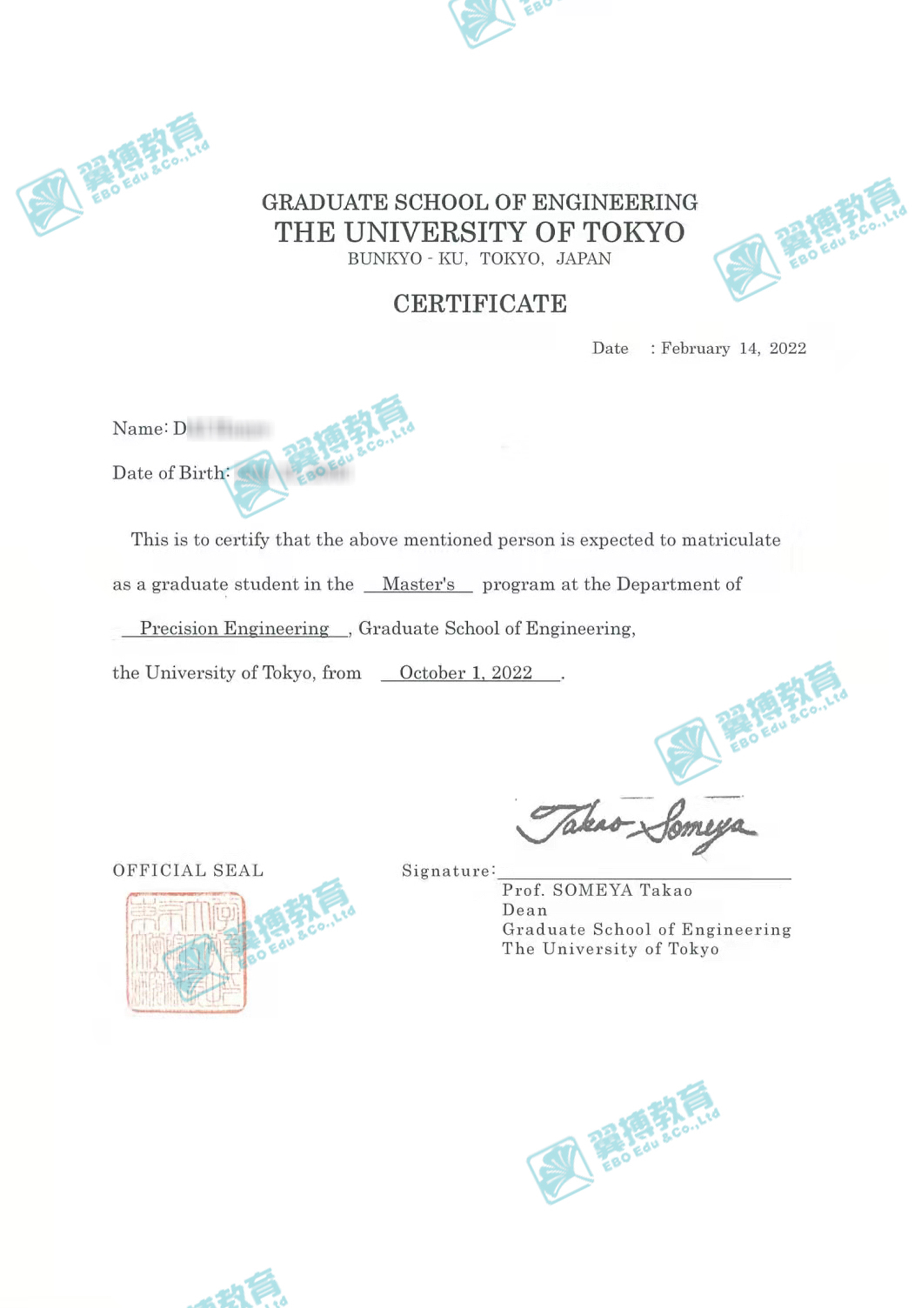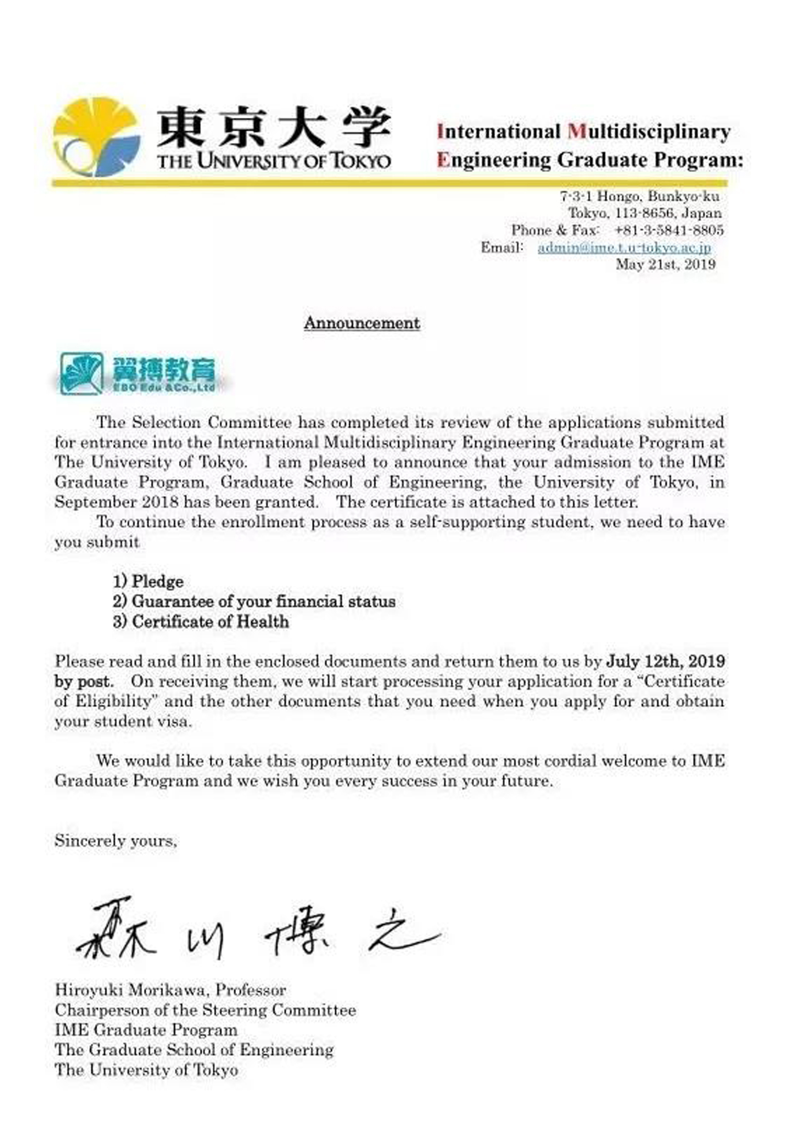 東京大學工學院修士課程(IME材料免試錄取,MEXT獎學金獲得者);